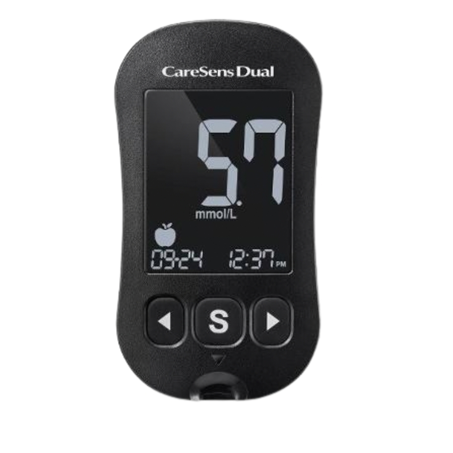 CareSens N Dual er et nøjagtigt og driftssikkert blodsukkerapparat, der samtidig kan måle blodketoner. Apparatet er udstyret med store, bløde knapper og et oplyst display med tydelige, letlæselige tal. Apparatet kræver kun en lille bloddråbe for at foretage en måling og har desuden en praktisk strimmeludløserknap.