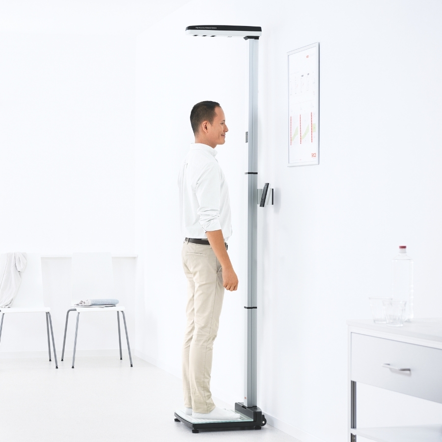 Seca 287 er en professionel målestation til måling af både højde og vægt. Højden registreres præcist med 3 ultralydssensorer og foretager en måling på millisekunder.